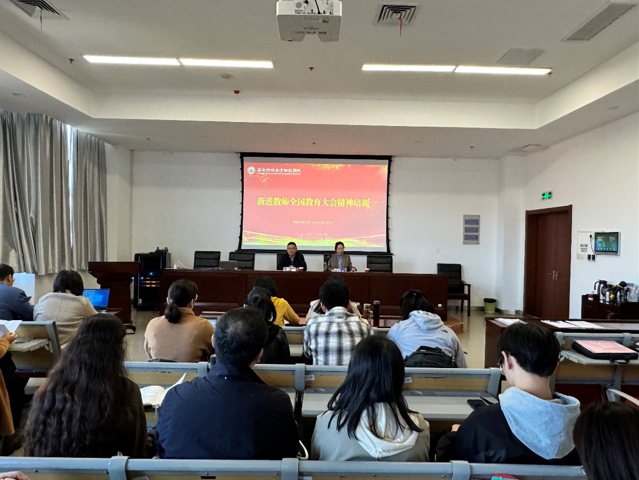 为深入学习贯彻全国教育大会精神,大力弘扬和践行教育家精神,引导新入职教师在建设教育强国新征程中实干笃行,强化使命担当,帮助新入职教师早日进入教师角色,更好的履行教师职责,10月23日,教师发展中心举办了新入职教师全国教育大会精神培训,校党委常委、副校长陈克军出席本次培训会,全体新入职教师参加培训。培训会由教师发展中心主任葛修娟主持。