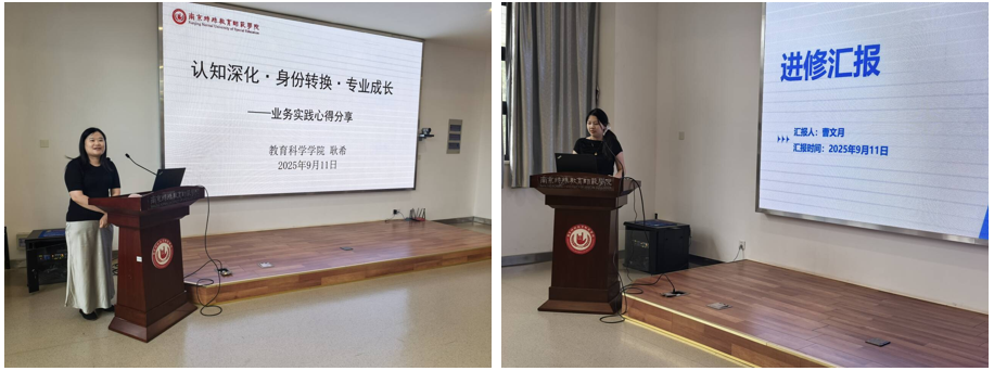 优秀实践教师代表耿希、曹文月分别作实践经验分享。耿希老师以认知深化、身份转换、专业成长为主线,阐述了她在特殊教育学校实践的心路历程;曹文月老师则用南京医科大学附属逸夫医院的进修实例,系统介绍了从临床参与到教学科研转化的全过程。二位教师的精彩分享,为与会者提供了可借鉴的实践路径与教学改革思路。