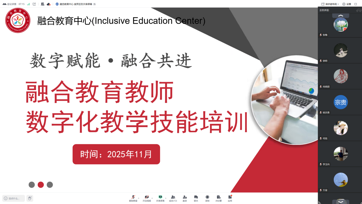 此次培训会的成功举办,为我校融合教育教师搭建了优质的学习交流平台,有效助力教师汲取兄弟高校先进的教育理念与实践方法,切实提升了数字化教学应用能力。下一步,融合教育中心将持续完善教师培训体系,常态化开展精准化、专业化的培训,为我校“办亮融合教育”工作提供坚实的师资保障。