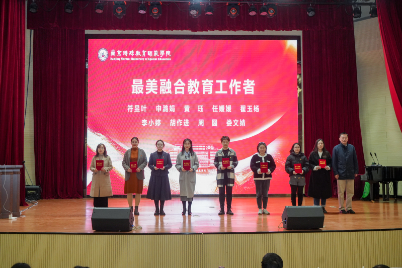 吴彬江副校长宣读了《南京特殊教育师范学院“最美融合教育”系列评选获奖名单》,并举行“最美融合教育教师”“最美融合教育工作者”“最美融合教育学生”及“最美融合教育伙伴”的颁奖仪式。