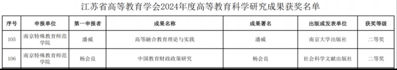 江苏省高等教育科学研究优秀成果奖由江苏省高等教育学会组织,旨在充分调动全省高等教育教学工作者的积极性和创造性,促进产出高质量的教育教学研究成果。此次评选活动共收到97所高校(事业单位、分支机构)推荐的论文、著作和报刊文章等459项,经审核及公示,对其中400项予以评审。经专家组评议,共评选出奖项160项,其中,特等奖9项、一等奖22项、二等奖129项。
