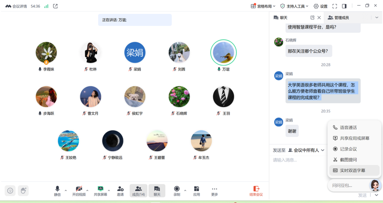 万处在会议中强调,数字化课程建设是学校推进教育教学改革、提升人才培养质量的重要举措,希望各课程团队以此次培训为契机,充分发挥平台功能优势,优化课程设计与教学实施,切实提高教学效果和学生学习体验。