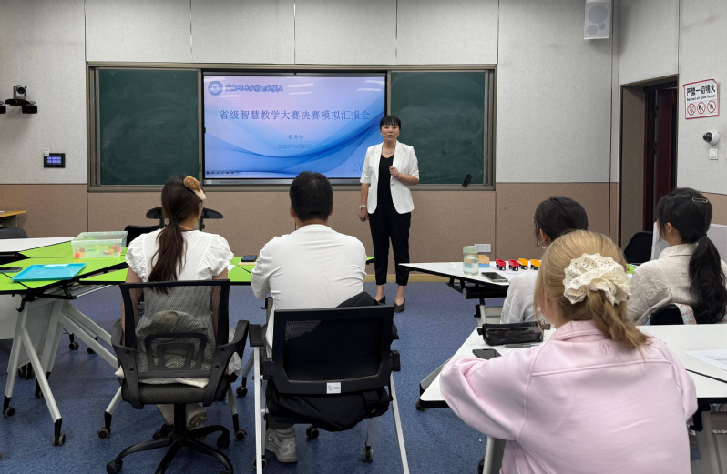 为全面提升我校教师参加省级智慧教学大赛决赛的竞技状态与教学展示水平,确保以最佳风貌亮相省级舞台,9月23日下午,我校组织参赛教师进行省级智慧教学大赛决赛模拟汇报会。本次活动由教务处副处长万谊主持。