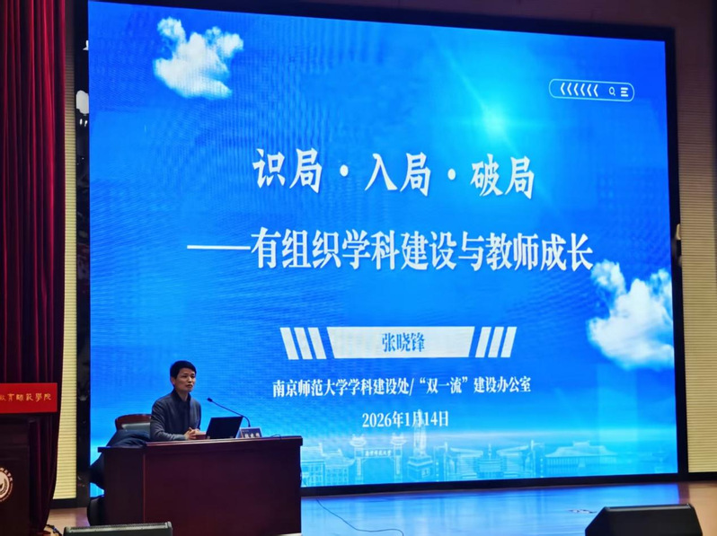 南京师范大学张晓锋教授以“识局·入局·破局——有组织学科建设与教师成长”为题作专题报告。他指出,创新人才培养需从“被动适应”转向“主动引领”,紧密对接国家战略与行业前沿实现育人格局“方位跃迁”,并提出通过培养体系数智化、教师能力融合化等路径,深化产教融合与科教融汇,系统性提升育人成效,为学校学科建设与教师专业成长指明方向。