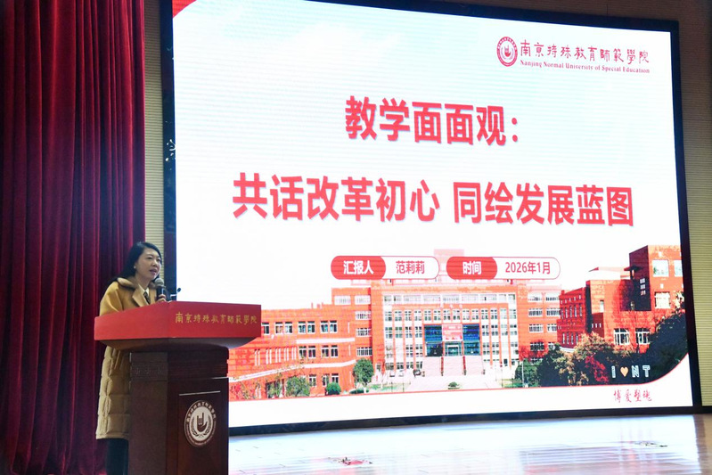 教务处处长范莉莉作“教学面面观——共话改革初心 同绘发展蓝图”专题报告,结合学校财务数据与教学改革实际,剖析公共课优化、课时量调整、合班教学等举措的背景与成效。针对人口结构变化与人工智能技术带来的教育变革,她提出2026年学校将重点推进“五大工程”(教育家精神育人工程、智慧平台赋能工程、专业建设优化升级工程、课程建设改革工程、教师队伍建设工程),通过创新选课机制、建立专业画像预警体系等路径,破解教学资源结构性矛盾,持续提升人才培养质量。