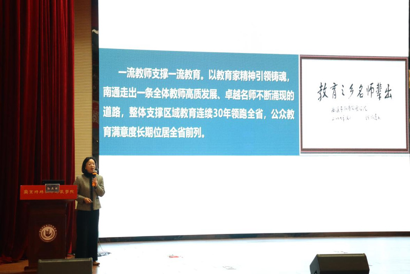 南通市教师发展学院书记、院长孙亚丽以《教育家精神的内涵要义与培育路径》为题开展专题讲座,为整场培训筑牢精神根基。她从历史脉络到当下实践、从理论阐释到落地路径,围绕具象表达、价值意蕴、培育路径三个维度,系统解读教育家精神的核心内涵。孙亚丽院长强调,教育家精神并非抽象口号,而是点燃教师教育热情的火种,是扎根教育实践、凝结教育智慧的精神结晶,希望每一位教育工作者都能坚守教育信仰,争做教育家精神的传承者与践行者,在平凡岗位上成就不凡价值。结合南通地区教育发展实践,她分享了当地践行教育家精神、推动区域教育连续30年领跑全省的成功经验,让参训教师对精神内涵的理解更加深刻。