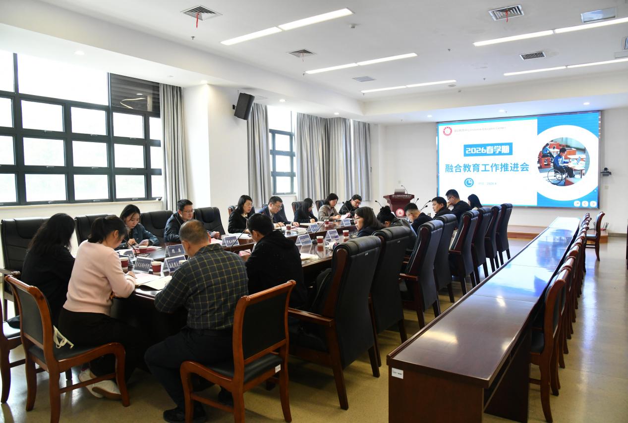 会议伊始,融合教育中心负责人简要回顾了2025年融合教育工作成效,详细解读了2026年工作要点,重点围绕智慧教育平台特色板块建设、融合教育伙伴系统化培训、对外宣传交流等核心任务进行讲解,并将近期融合教育学生调研中集中反映的问题,反馈给各学院及相关职能部门。在交流研讨环节,各参会人员围绕融合教育教学模式优化、学生心理健康辅导、实习就业保障、校园无障碍环境建设等关键议题深入交流,凝聚工作合力,明确协同发力重点。
